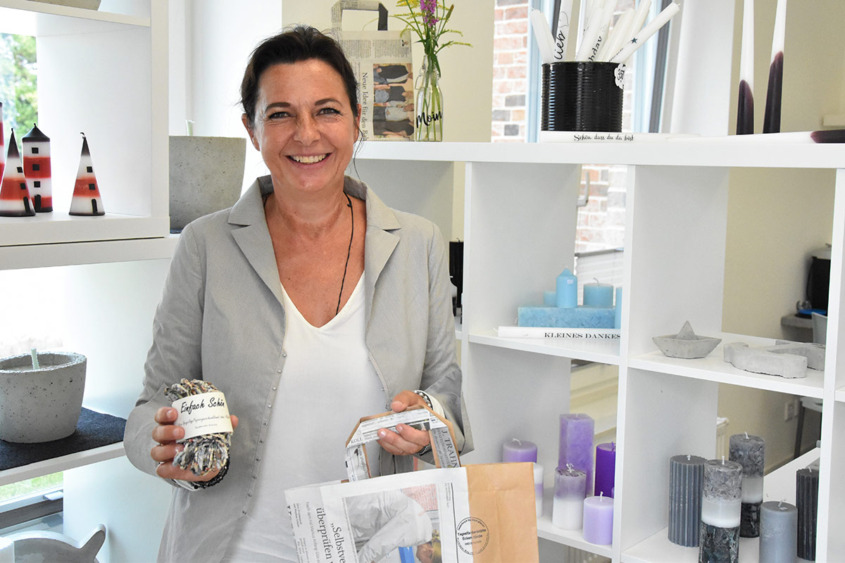 Menschen mit Handicap stellen hochwertige Produkte aus Textilien, Wachs, Beton und Papier her und verkaufen diese vor Ort. Daneben werden wechselnde Produkte aus allen Arbeitsangeboten der Arbeits- und Bildungsorte Schleswig und der Tagesförderstätte Eckernförde der Hesterberg & Stadtfeld gGmbH angeboten.
